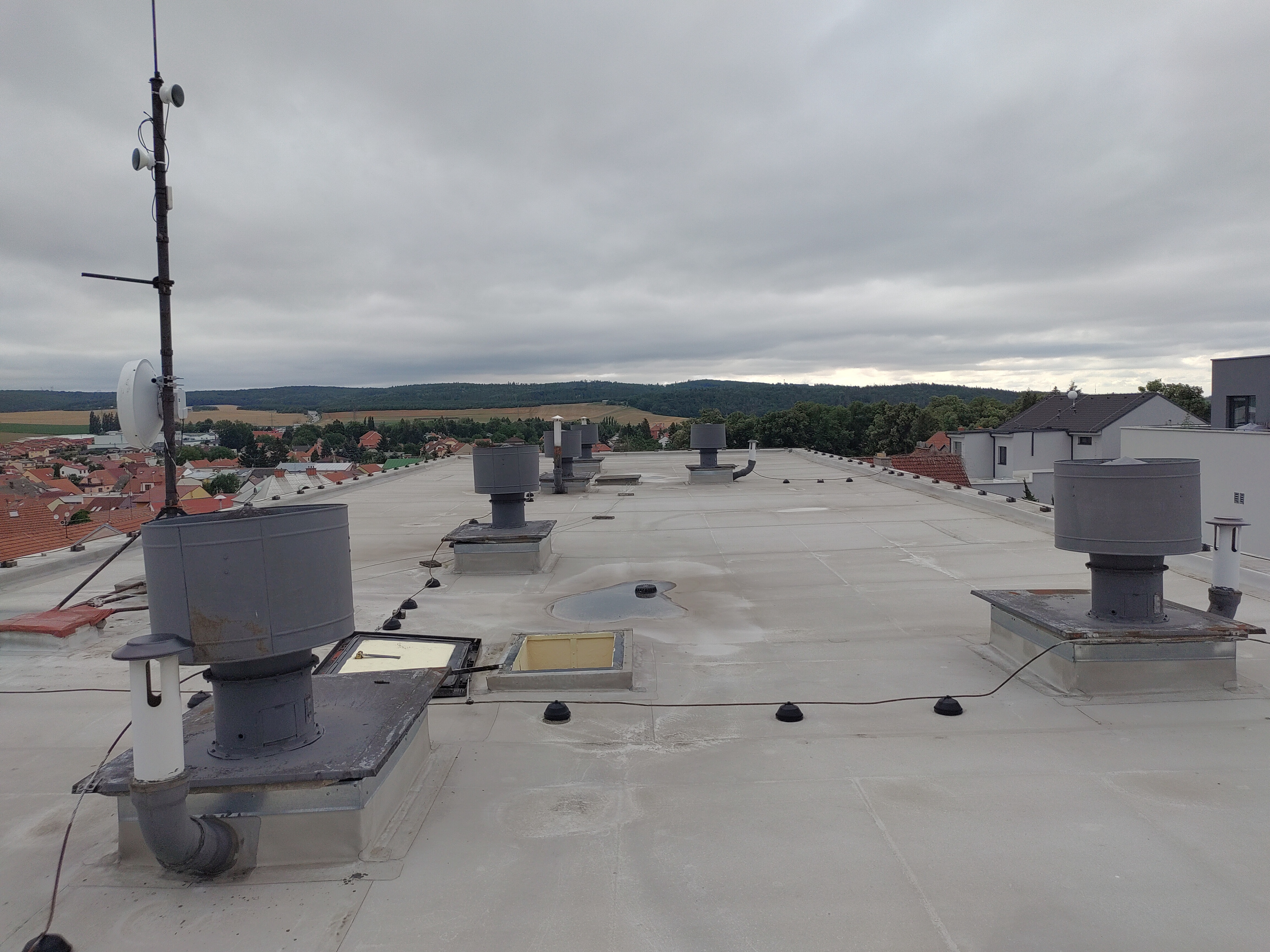 Na základě obdrženého protokolu o stavu střešní hydroizolace jsme společně s Matějem Pěnčíkem provedli zatmelení označených míst na krycím povrchu střechy. Společně se Zdeňkem Poulíkem nyní poptáváme cenové nabídky na celkovou výměnu střešní hydroizolace.